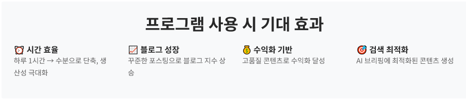 - 수익화 기반 마련: 고품질 콘텐츠 생성을 통해 수익형 블로그의 기틀을 다집니다.